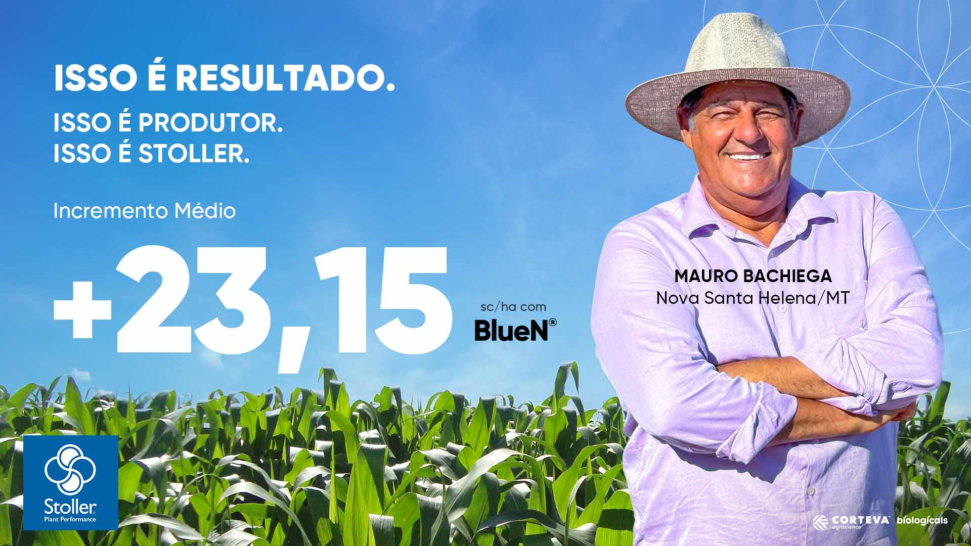 “O BlueN foi o grande destaque. Tanto na soja quanto no milho, o ganho foi expressivo. E o suporte técnico da Stoller, junto com a Paiol, tem feito toda a diferença.”