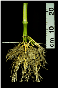 Figura 4. Raízes adventícias ou de sustentação do milho. Crescimento ocorre a partir dos nós acima da superfície do solo.
