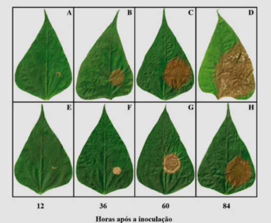 Como pôde ser evidenciado (Figura 2), os danos causados pelas doenças no campo implicam diretamente em diminuição da produtividade na lavoura, uma vez que as lesões decorrentes da colonização da planta pelo patógeno reduzem a área foliar fotossinteticamente ativa disponível para enchimento de grãos. Dessa forma, a redução na severidade do mofo branco nas plantas de feijoeiro em resposta à aplicação de Fosfito de Zinco (resultado da pesquisa publicada por FAGUNDES-NACARATH et al., 2018), demonstrou o potencial desse composto no manejo da planta em situações de estresses bióticos.