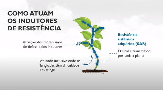 De maneira simples, seria como se a planta fosse avisada que ela pode ser atacada a qualquer momento. E o efeito disso que observamos na planta é uma resposta bem mais rápida e intensa contra o doença, ou seja, os seus mecanismos de defesa são maximizados
