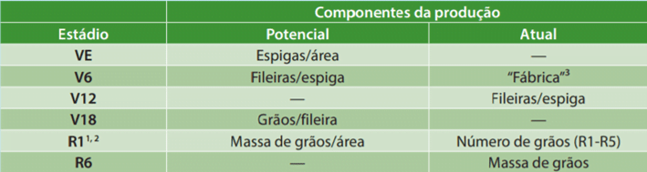 Tabela 1. Estádios críticos do crescimento e seus componentes para definição da produção de milho.