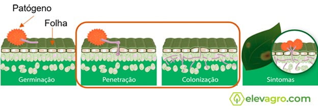 Figura 2. Detalhe do ciclo das relações patógenos-hospedeiro que será inibido pela indução de resistência.