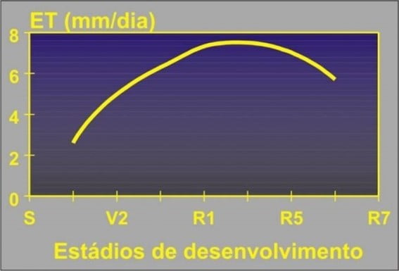 Figura 3. Evapotranspiração diária (ET) em diferentes estádios do desenvolvimento da soja.
