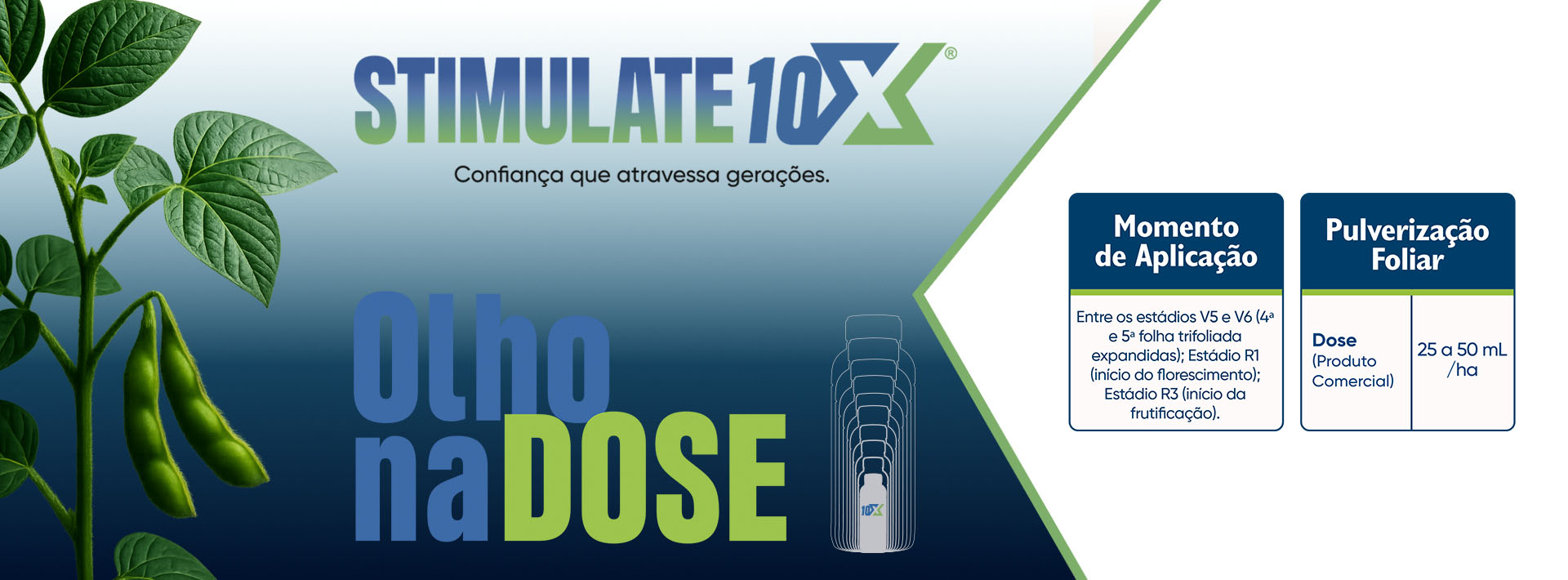 O Stimulate 10X para a soja, traz uma formulação que permite maior concentração hormonal. Por isso, é importante estar atento às novas dosagens recomendadas para garantir o melhor desempenho do produto.