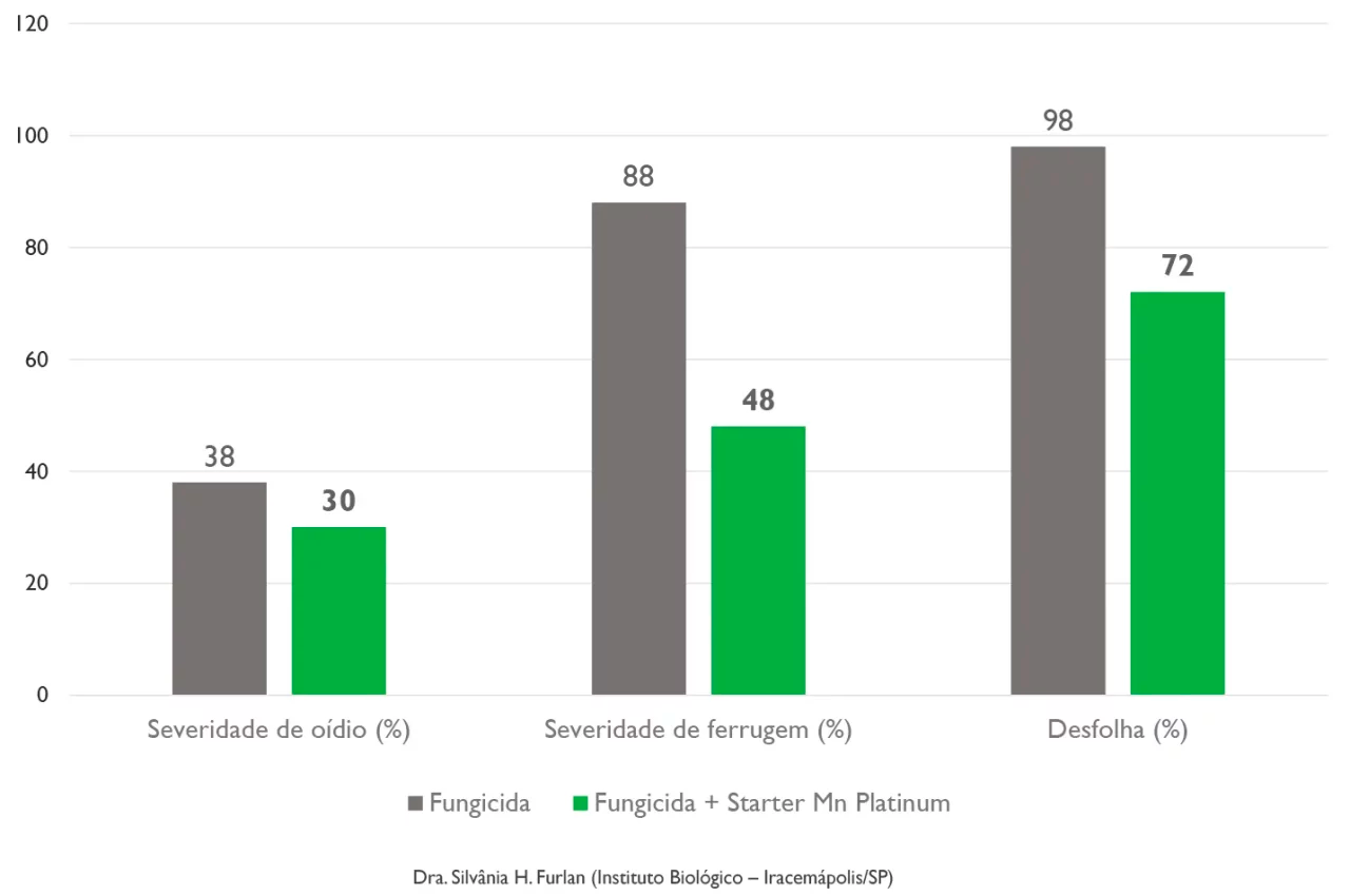 É uma tecnologia completa que promove o equilíbrio nutricional, aumento da resistência das plantas às doenças e aumento da produtividade, fornecendo manganês, zinco, boro, cobre, molibdênio, nitrogênio e enxofre. Recomendado em misturas por conta de sua exclusiva tecnologia de formulação, o Starter Mn Platinum® garante a melhor absorção e aproveitamento dos nutrientes do mercado.